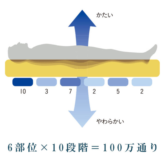 細かく仕切られたエアセルに空気を送り込み、頭や肩、腰や足など6つの部位ごとにフィット感を10段階で調整できるから、あなたの眠りが求めていた寝心地に、きっとたどりつけるはず。